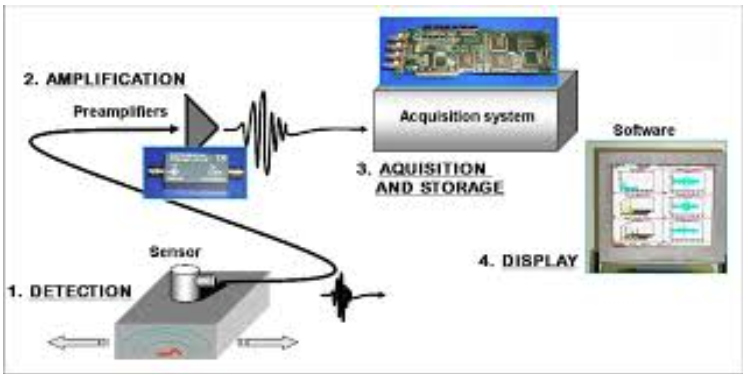 AE is performed by applying a localized external force such as an abrupt mechanical load or rapid temperature or pressure change to the part being tested. The resulting stress waves in turn generate short-lived, high frequency elastic waves in the form of small material displacements, or plastic deformation, on the part surface that are detected by sensors that have been attached to the part surface. When multiple sensors are used, the resulting data can be evaluated to locate discontinuities in the part.